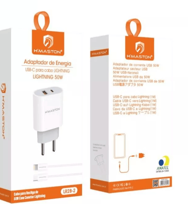 CARREGADOR 50W PARA IOS FONTE CABO USB-C HMASTON