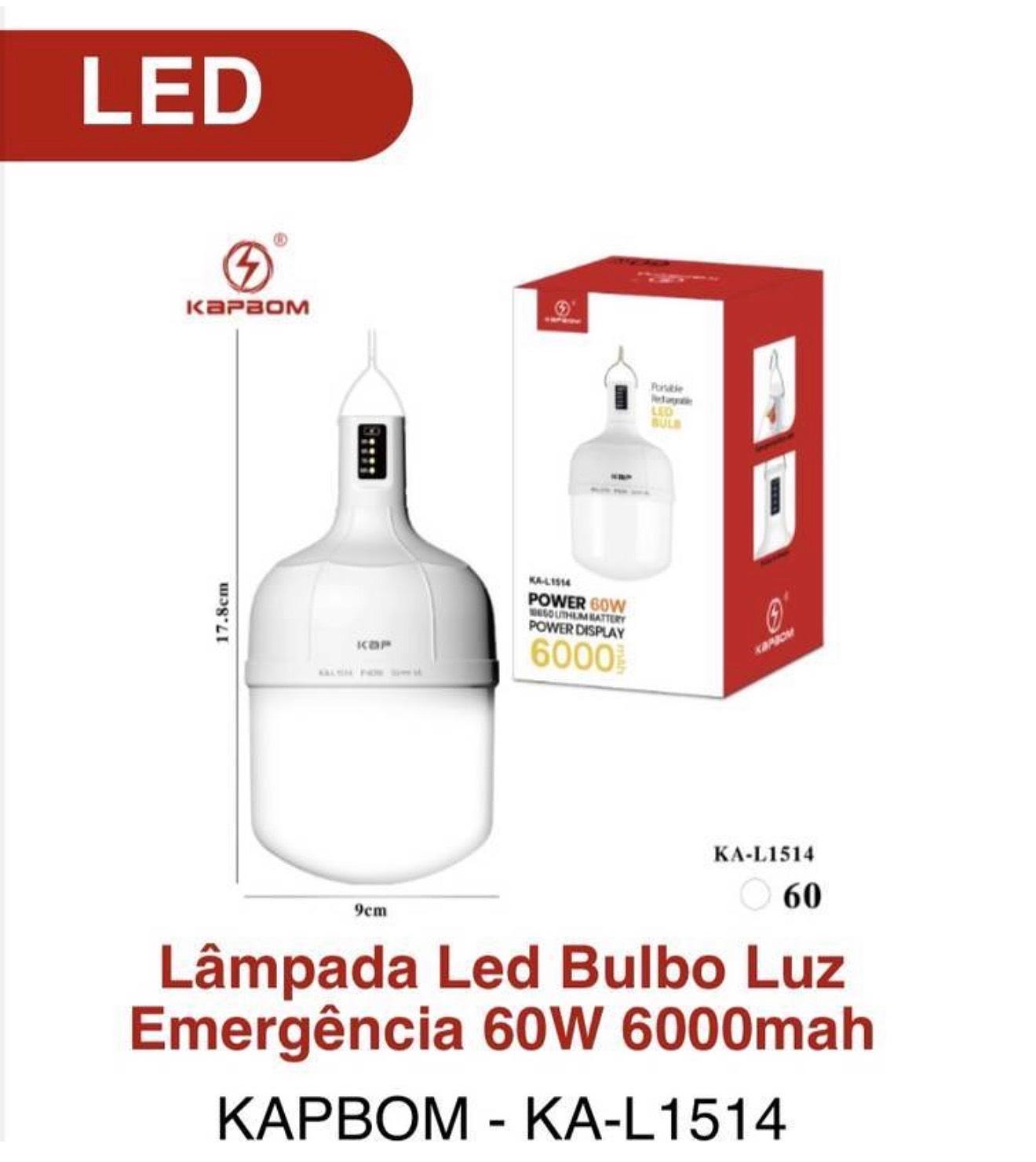 Lâmpada Led Bulbo Luz Emergência 60W 6000mah KAPBOM L1514