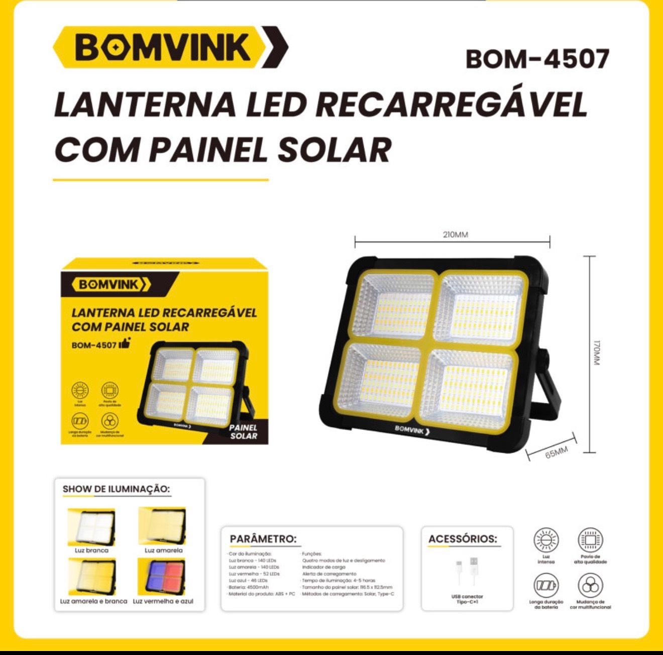 LANTERNA LED RECARREGÁVEL COM PAINEL SOLAR
